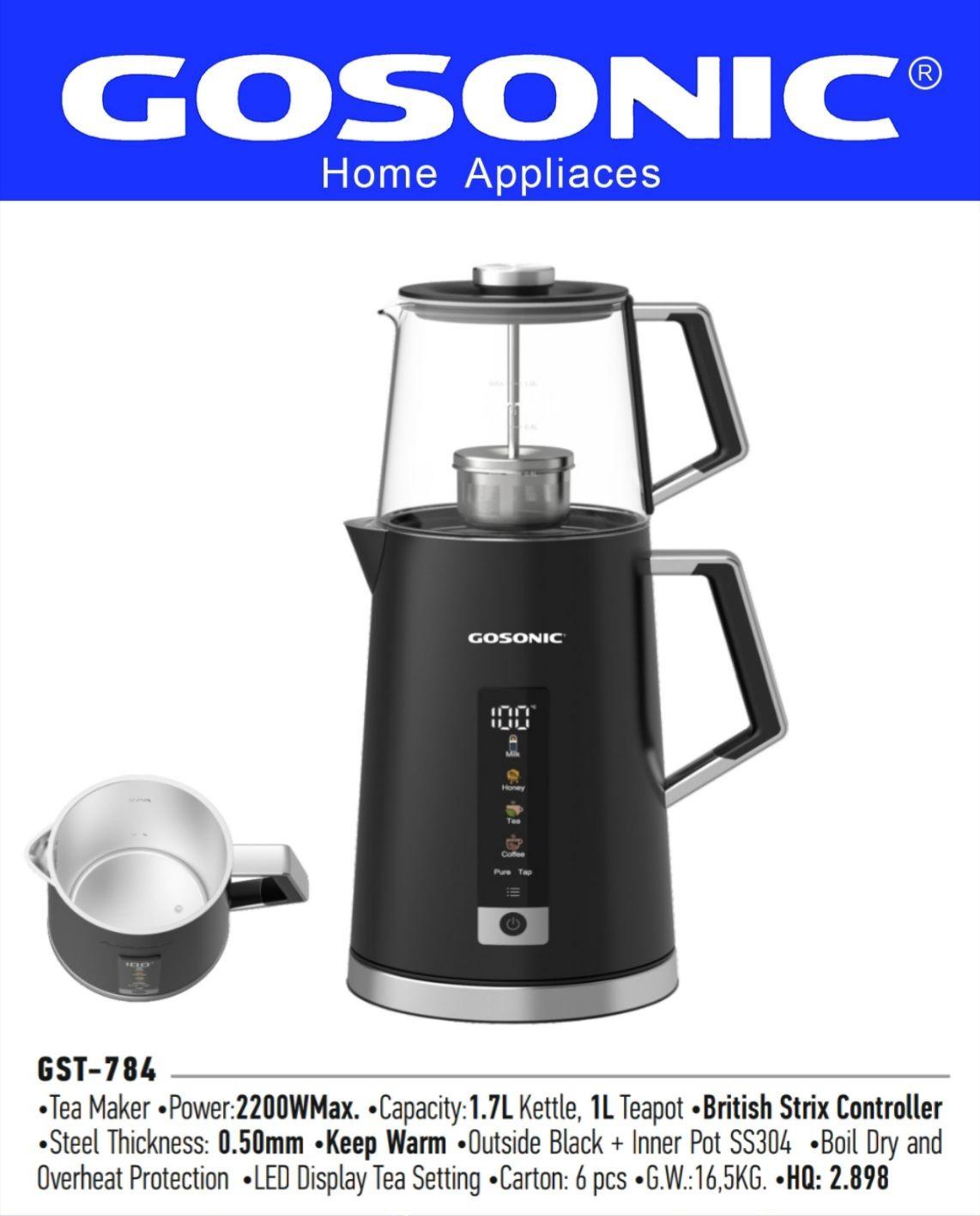 چای ساز گوسونیک مدل GST-۸۷۴ ظرفیت ۲ لیتر با کتری استیل