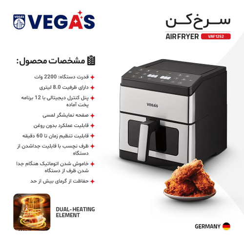 سرخ کن وگاس VAF1252 ظرفیت ۸ لیتر دو المنت هوشمندتماس بگیرید