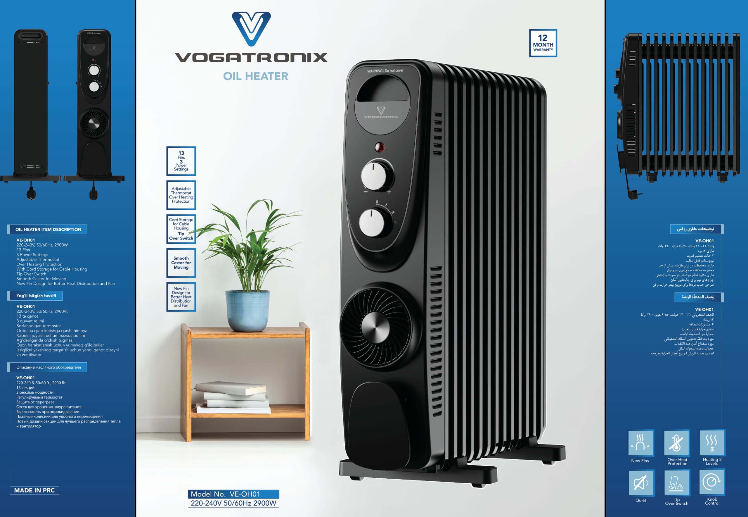 شوفاژ برقی ۱۳ پر فن دار وگاترونیکس - VE-OH01 - در ۲ رنگ مشکی و سفید مشکی