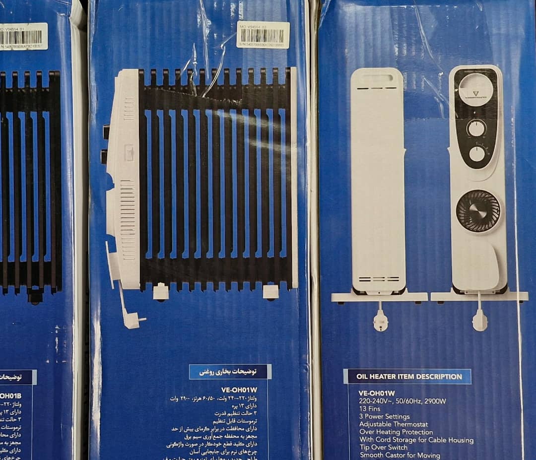 شوفاژ برقی ۱۳ پر فن دار وگاترونیکس - VE-OH01 - در ۲ رنگ مشکی و سفید مشکی
