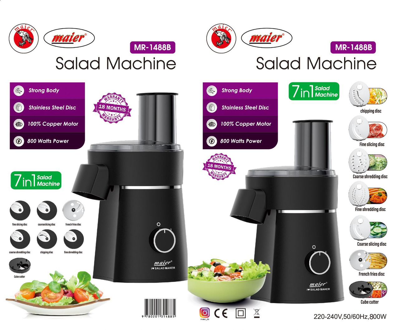 سالادساز ۷ کاره مایر مدل MR1488 - رنگ سفید و مشکی ( اصلی )